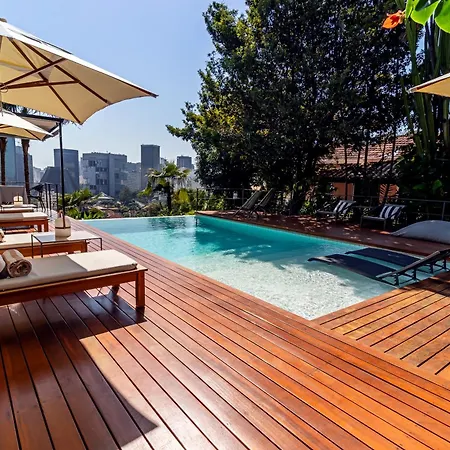 Piscina al aire libre con chimenea